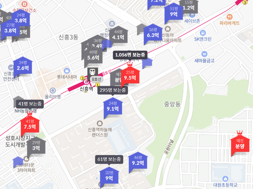 구성남은 빌라에서 아파트로 주거의 형태가 바뀌고 있는 지역인데요. 직접 구성남 지역을 방문해보면, 아직은 추가적인 개발이 필요함이 느껴지지만 계속해서 신축 대형 아파트가 들어올 것으로 예상되는 앞으로가 기대되는 지역입니다. 거기에 신흥역 해링턴 스퀘어는 8호선 바로 앞에 위치해 있어서, 잠실역까지 20분걸리고 추후에는 8호선이 판교까지 이어질 예정이라 합니다.