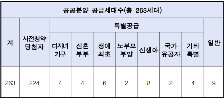 동작구 수방사는 행복주택과 군 관사를 제외하고 263가구가 공공분양주택으로 공급되는데, 이 중 사전청약 당첨물량 224가구를 제외한 39가구가 이번 본청약 대상입니다.