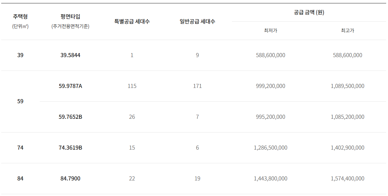 - 59m타입 : 9.9억~ 10.9억