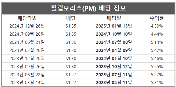 2025년 필립모리스 배당일(예상)