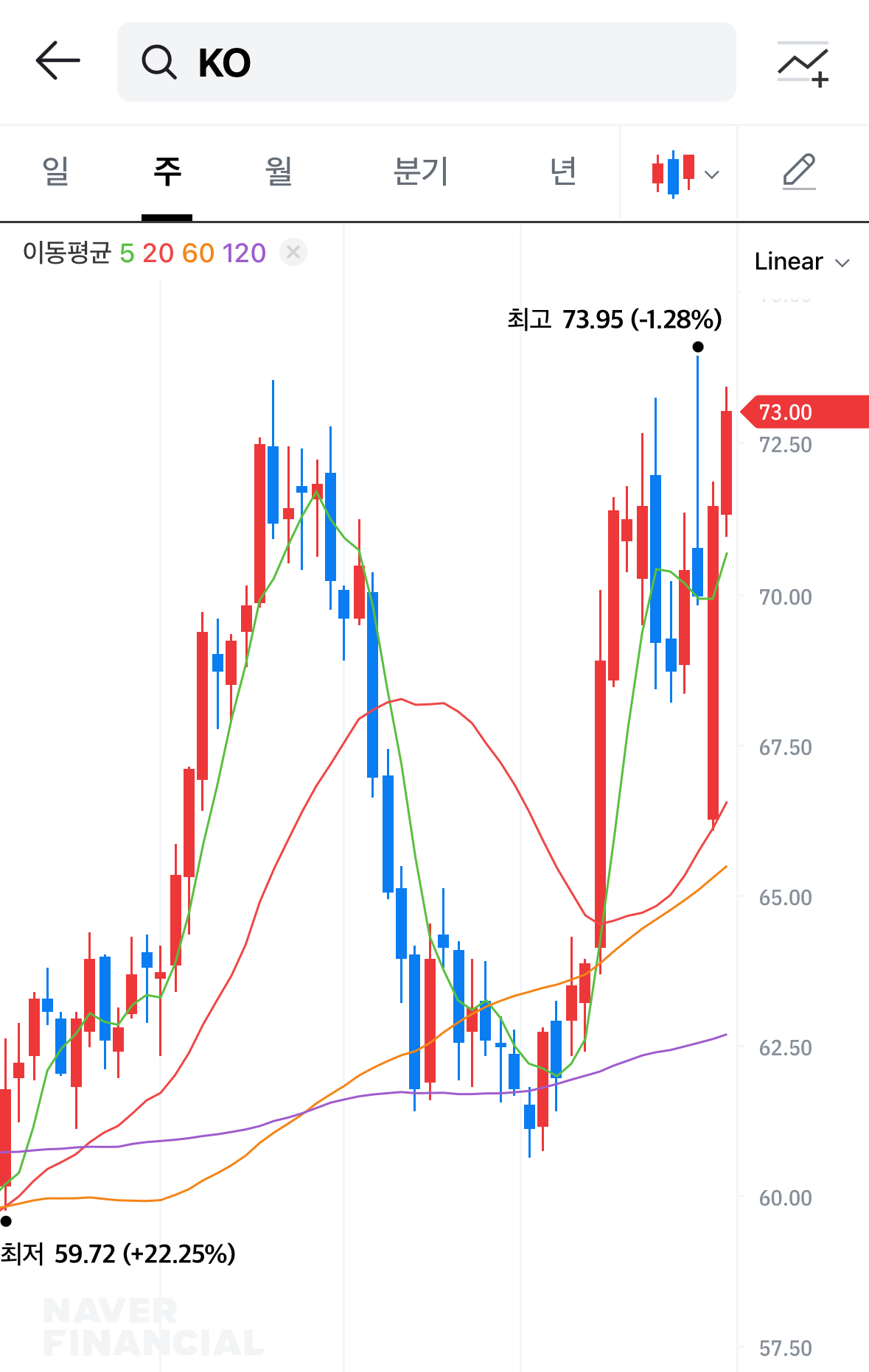 최근 코카콜라 주가는 3월 중순 이후 강하게 반등하며 약 10% 이상 상승했습니다. 경기 방어주로서의 특성과 함께 1분기 실적이 예상치를 상회하면서 투자자들의 관심이 다시 높아지고 있습니다.