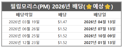 2026년 필립모리스 배당일(예상)
